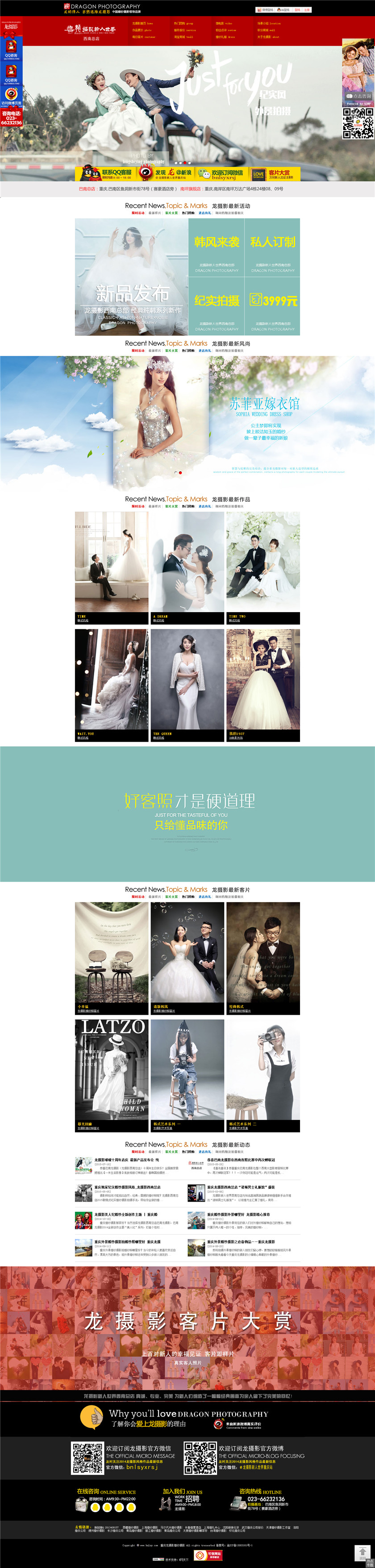 龙摄影婚纱摄影连锁集团于1976年在台湾成立,至今已有近40年的历史。。“真诚、专业、完美”三大精神是龙摄影的经营核心,以客为尊并提供真诚的服务、完美的品质、专业的技术、流行风格不断创新以...
