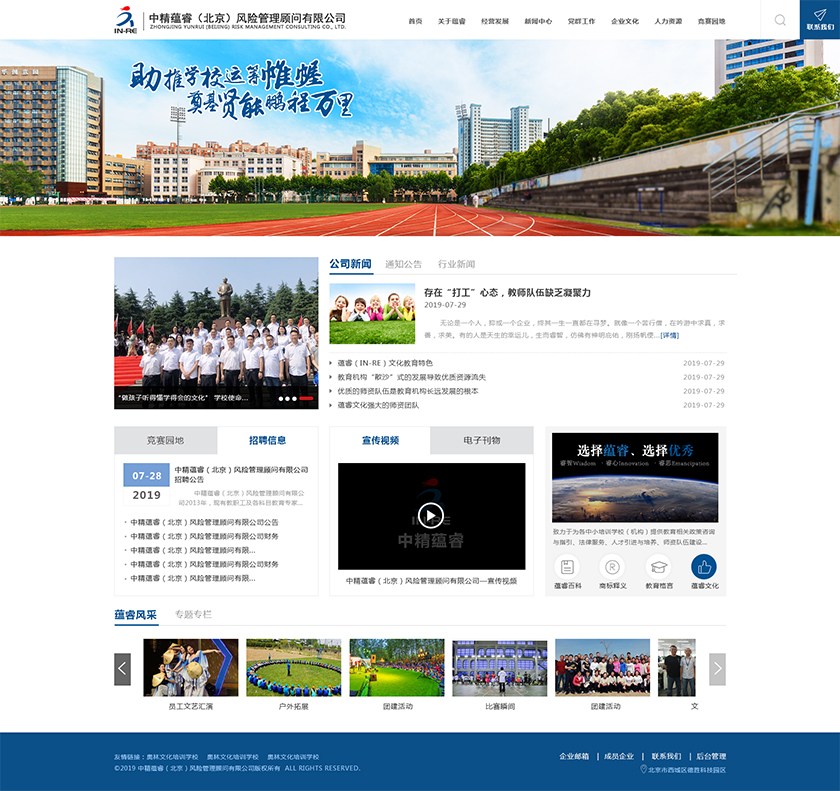 Project Description 中精蕴睿(北京)风险管理顾问有限公司2013年,现有教职工及各科目教育专家80多人,致力于为各中小培训学校(机构) 提供教育相关政策咨询与指引、法律服务、人才引进与培养、师资队伍建设与培训、教学教研与学科创新、市场营销企划、文化 理念塑造与品牌输出的专业化教育管理全方位的综合服务。 Official website address 绥化http://in-re.com/ I want to share